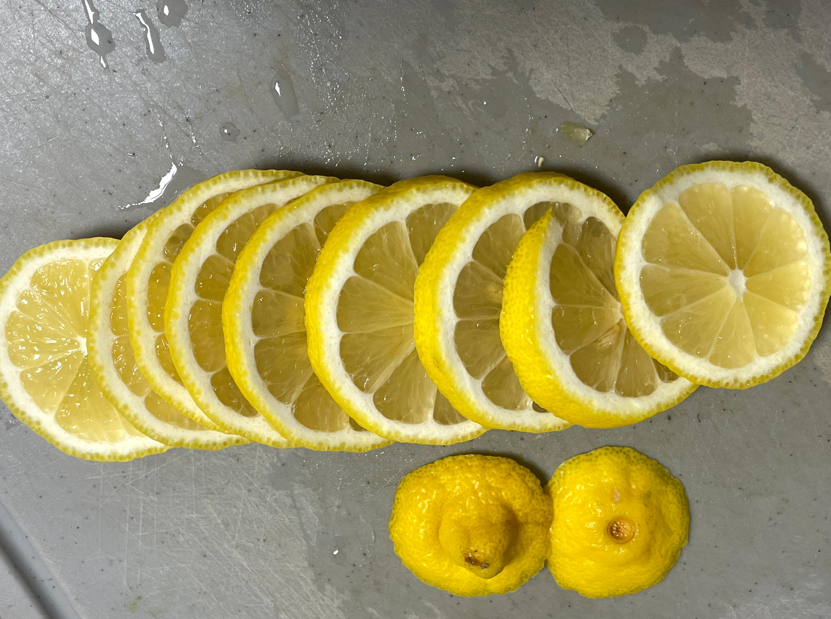 ※ 레몬이 달콤한 과일이 아닌데 쓴맛이 나는 끝부분과 씨앗을 제거하지 않으면 먹을 때 정말 써요, 그래서 썰은 후 씨앗을 빼는 것이 중요합니다.