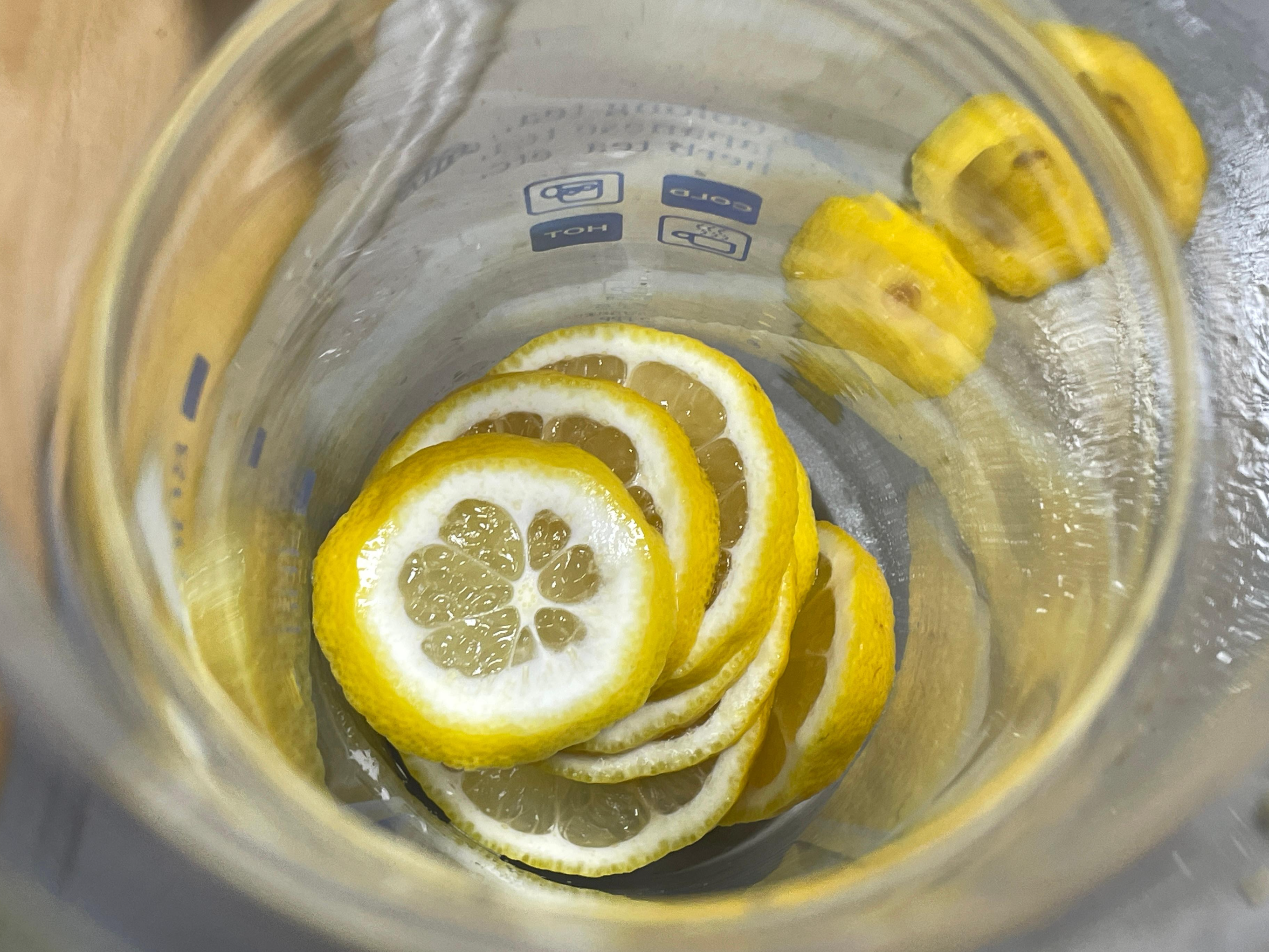 처음에는 찬물에 만들어서 마셔보기도 하고 따듯한 물로 만들어서 레몬은 담가놓은 채로 마셔보기도 했는데 뜨거운 물이 식은 후 레몬을 건져내고 마시는 것이 가장 좋은 것 같습니다.