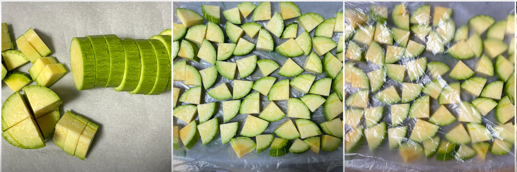 3. 애호박을 삶지 않고 생으로 얼릴 때는 서로 붙지 않게 살짝 얼려서 위생봉지나 보관용기에 넣어서 얼립니다.
