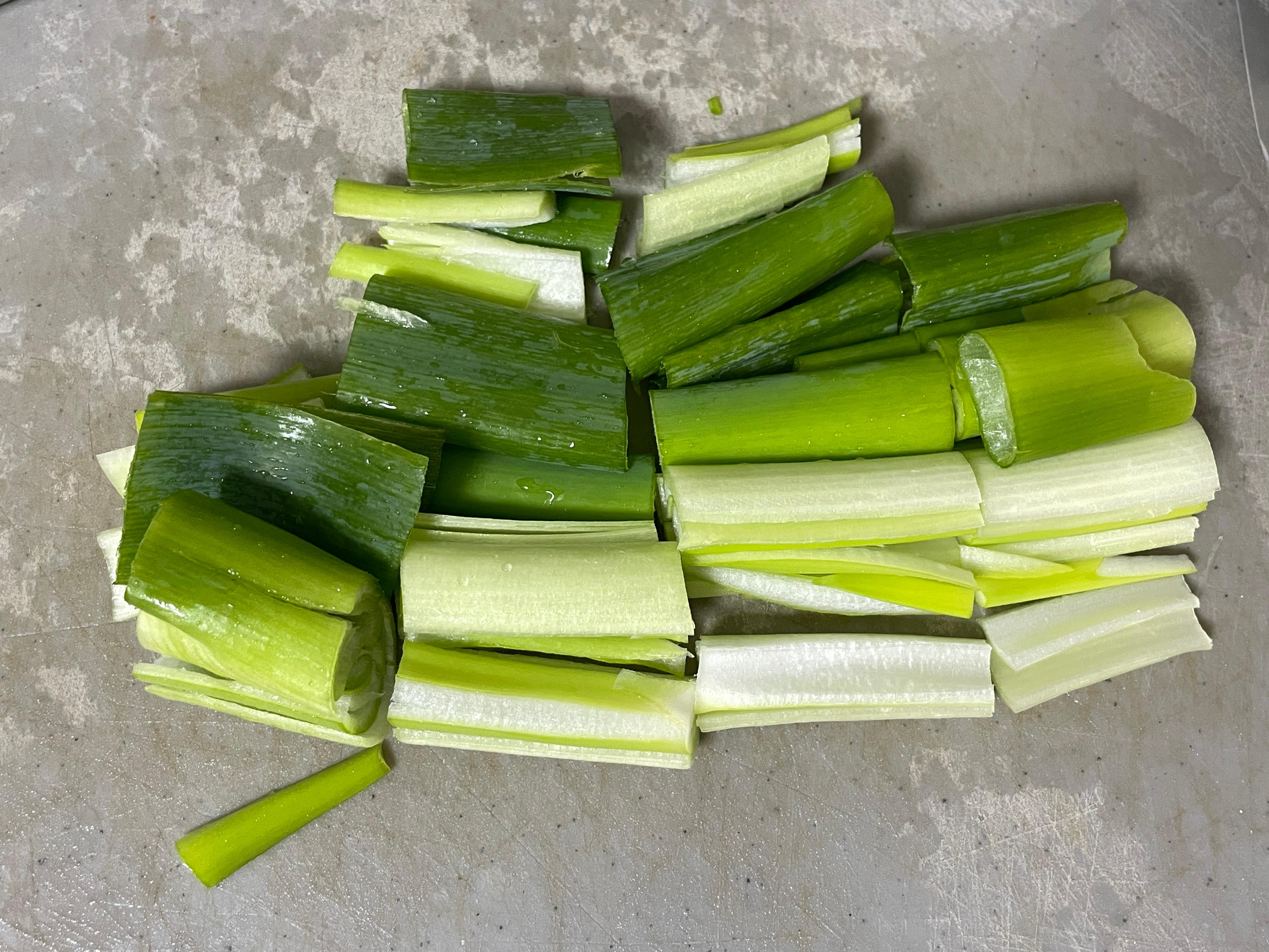 3. 파는 반갈라서 3~4cm 길이로 썰어줍니다.