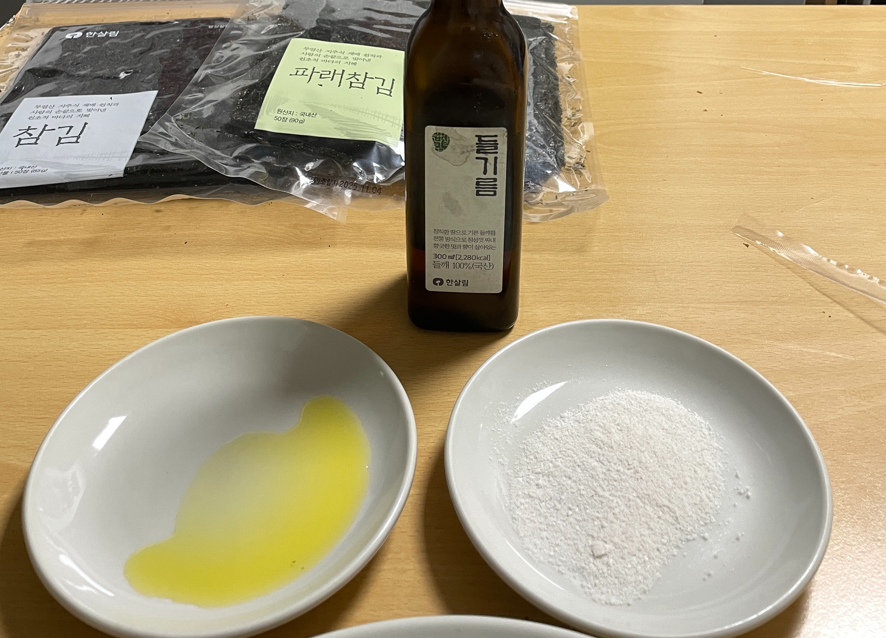 1. 들기름과 소금은 접시에 준비해 줍니다.
