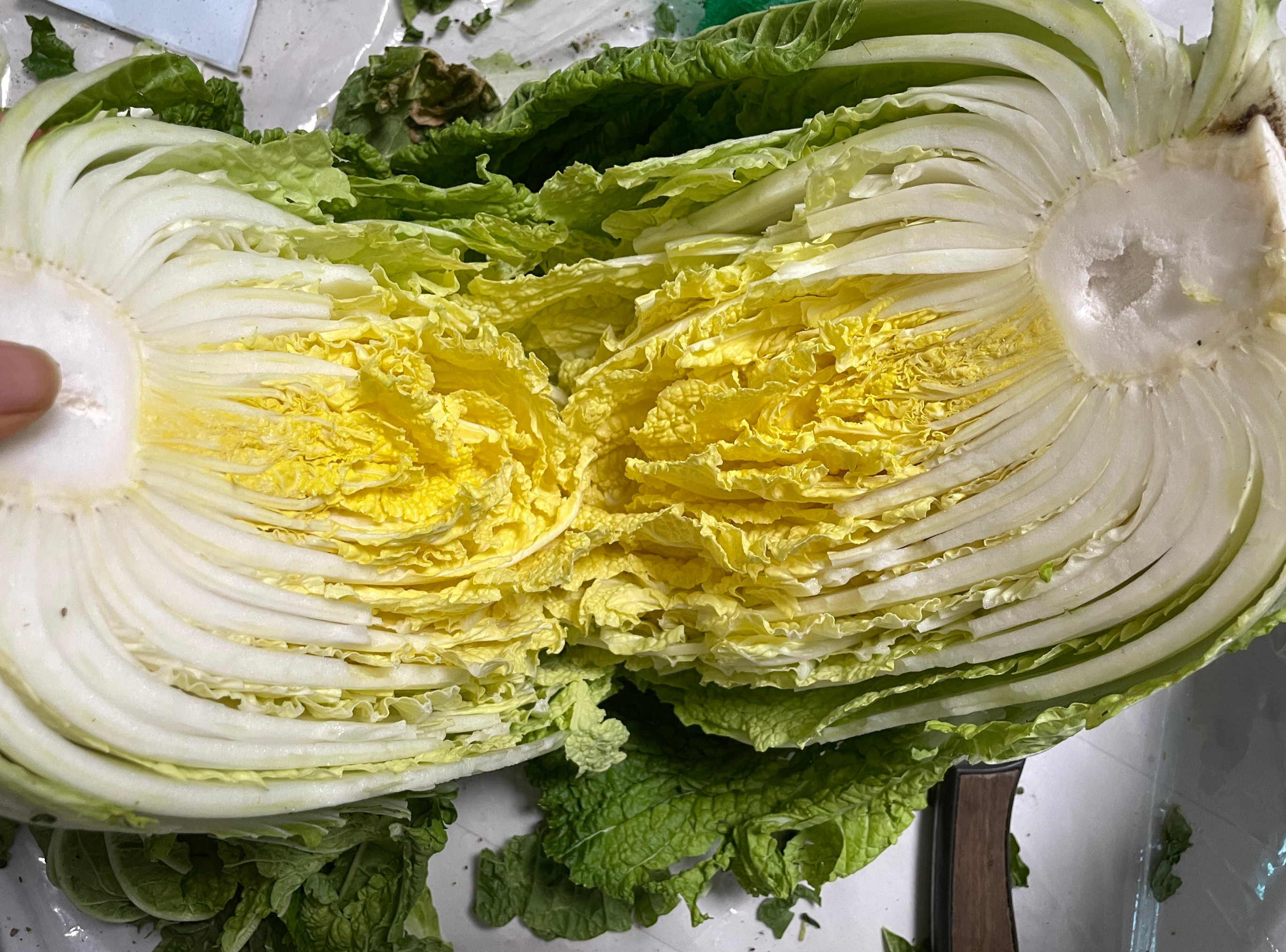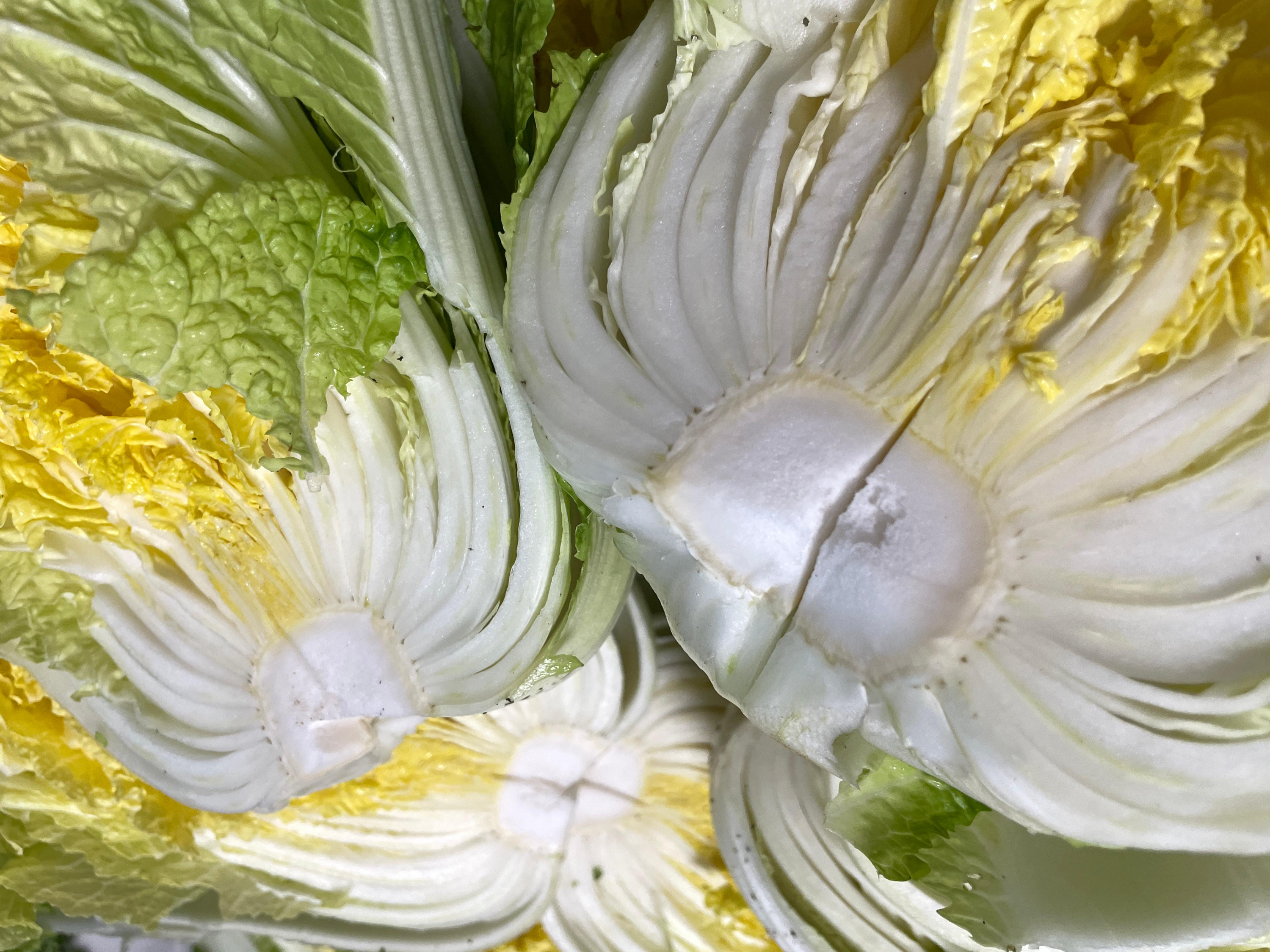 ※배추는 칼로 반을 가르면 배춧잎이 많이 떨어져요. 그래서 손으로 빠개는 것입니다.