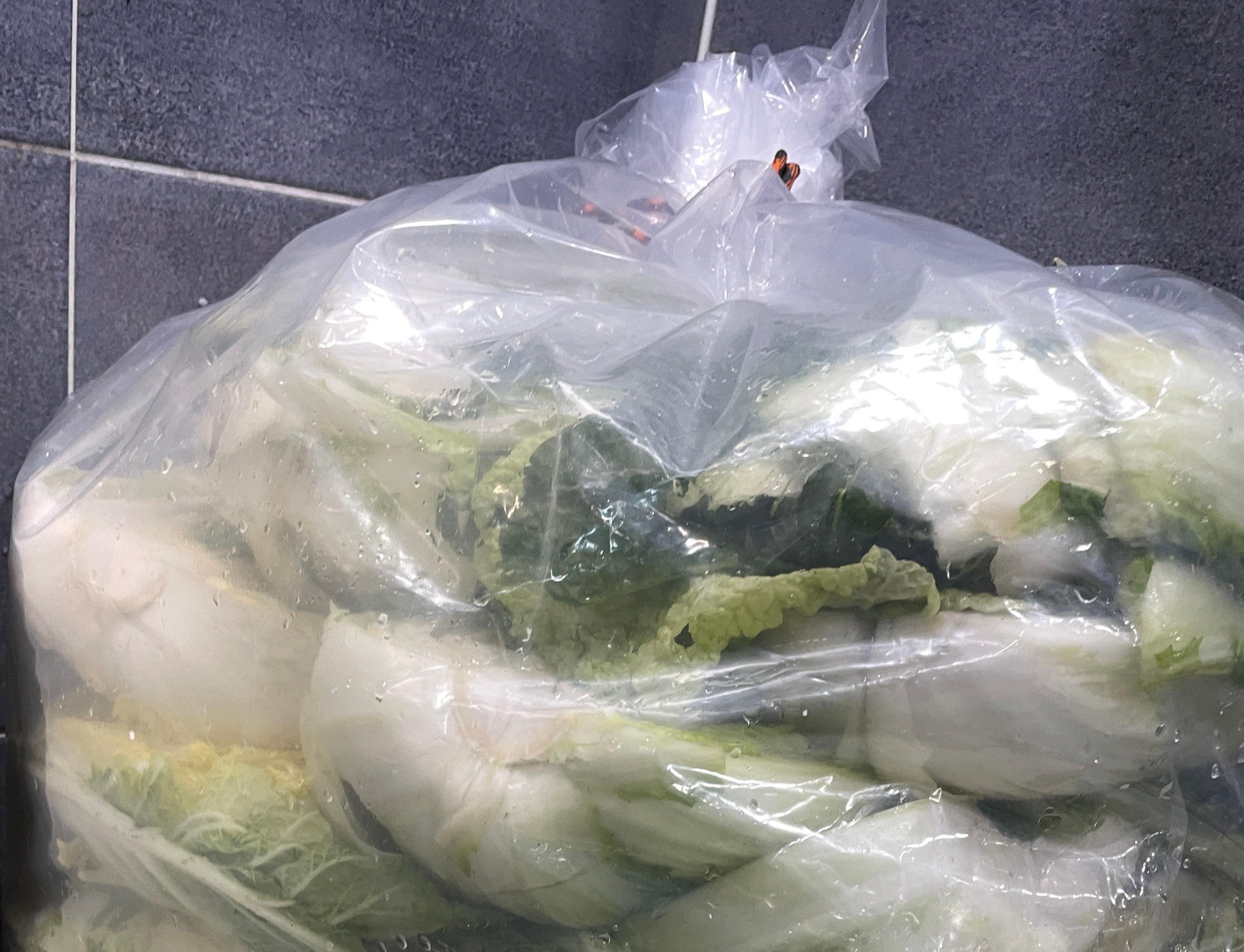 5. 소금을 친배추는 김장비닐에 넣어 입구를 꼭 묶어서 놔둡니다.