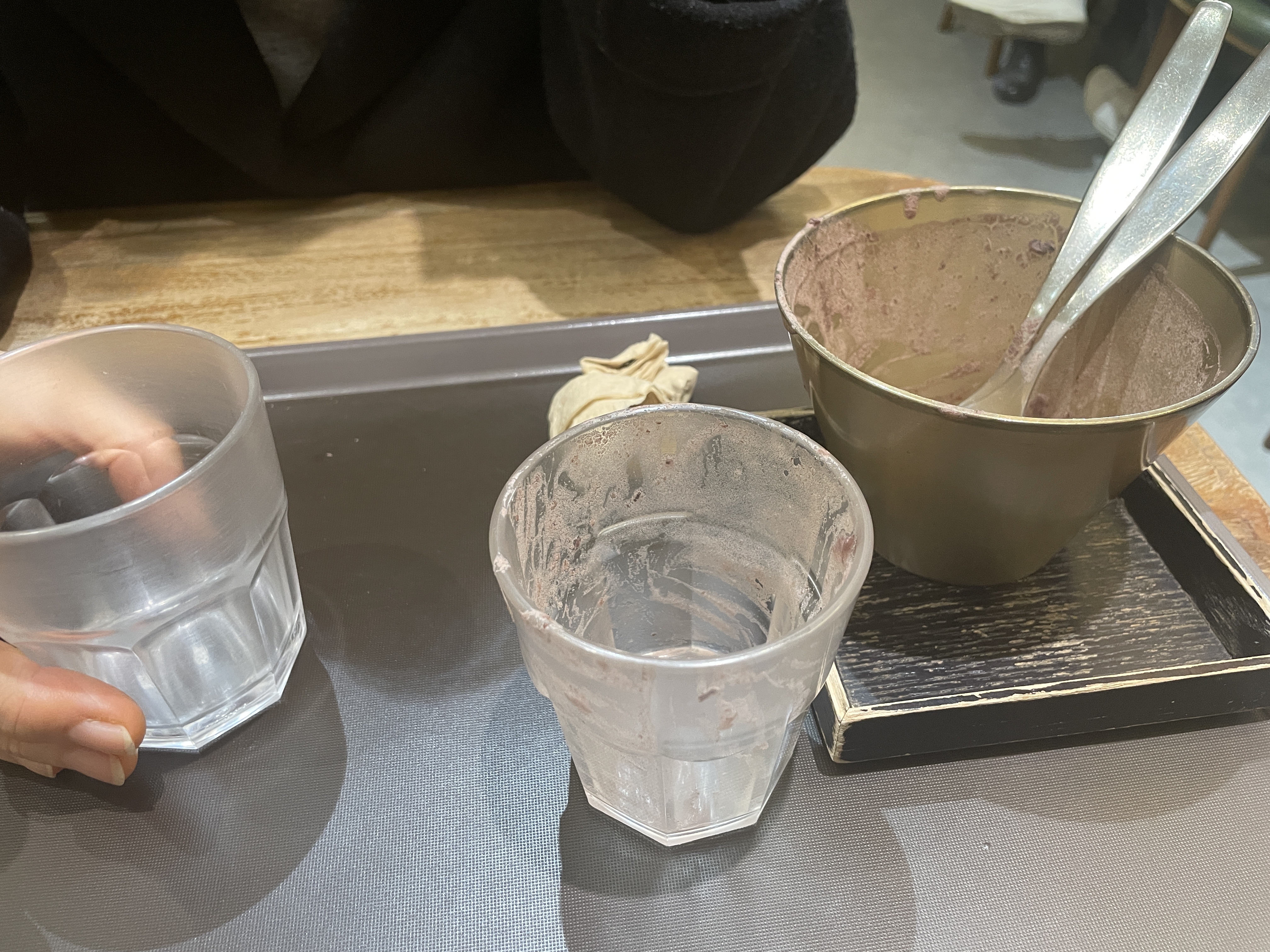 단팥죽을 컵에다 덜어먹으니 맛이 덜한 느낌이었습니다.
