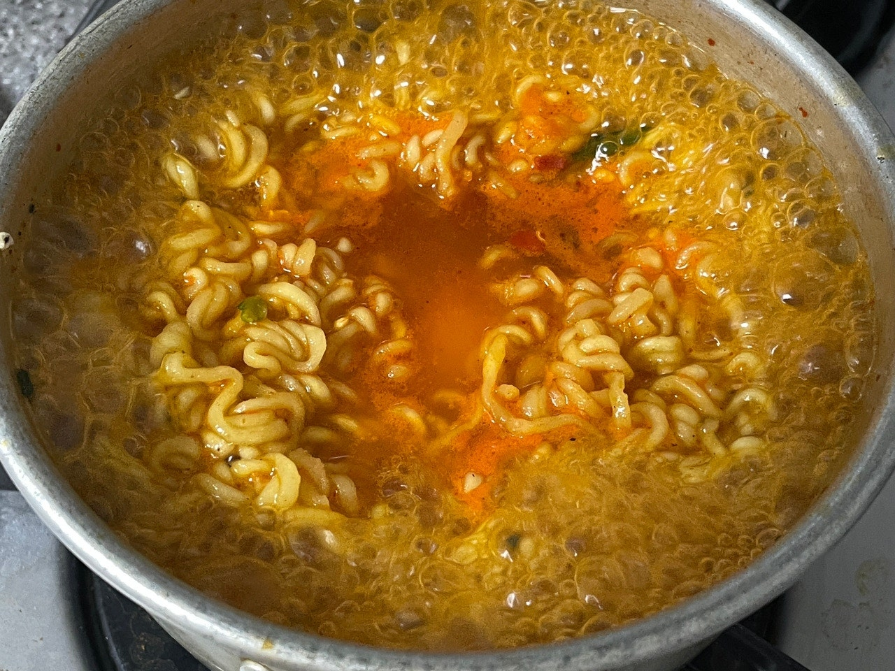 ※신라면골드의 조리법에서는 4분 30초에 불을 끄라고 쓰여있는데 4분 30초는 너무 면이 풀어져서 저는 4분 끓이고 불을 껐는데 훨씬 쫀득하고 맛있어요.