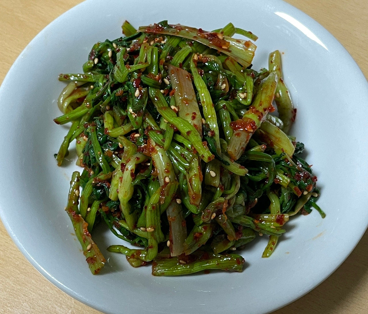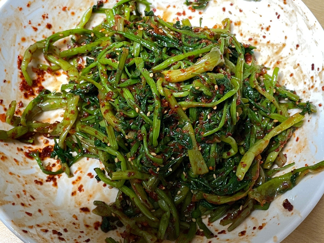 고춧가루를 1큰술 추가하면 칼칼한 매콤 미나리무침으로 변신해요.