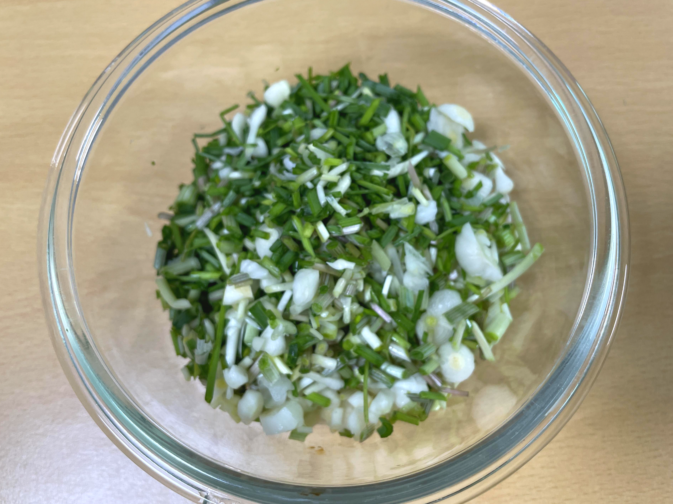 ※ 달래 썰기는 양념장을 만들 것이므로 달래를 0.5cm으로 썰어주는 것이 좋을 것 같아요. 약간 길어도 상관은 없어요.