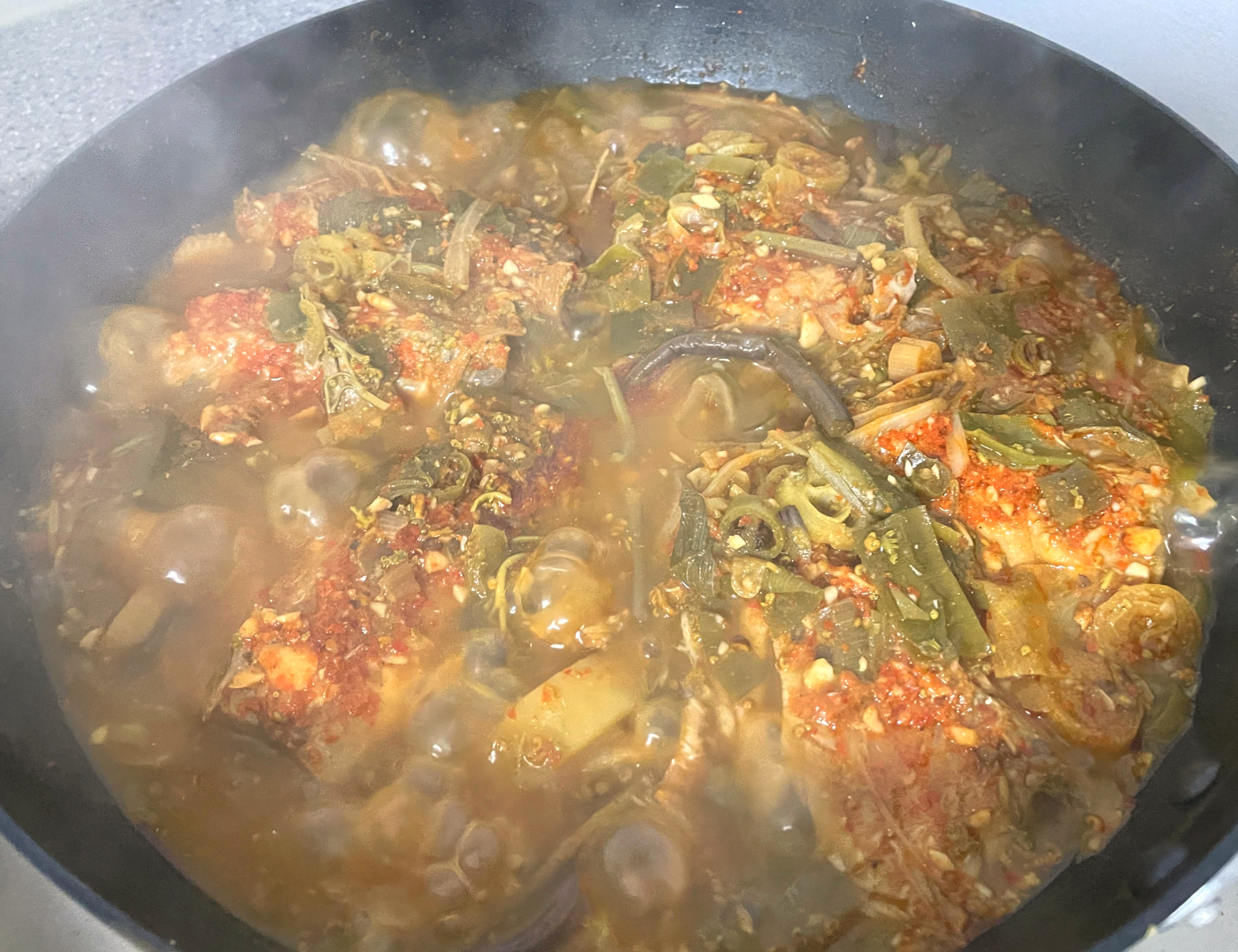 9. 생고사리 고등어조림이 팔팔 끓을 때